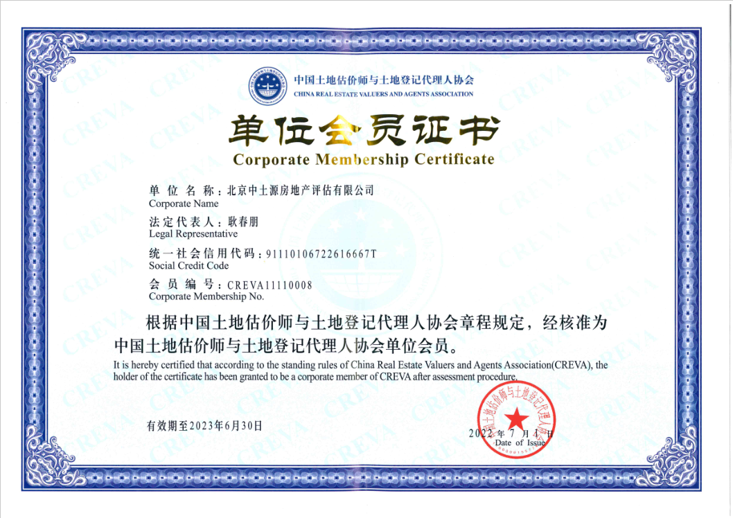 2022年7月中国土地估价师与土地登记代理人协会授予我单位会员单位荣誉证书,我公司将对各类执业人员的专业严格要求,打造一支专业素质过硬、高水平的评估技术团队,为客户提供专业、高效的服务。